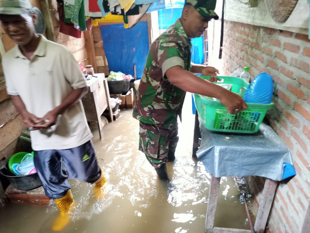 Air meningkat cepat dan masuk ke sejumlah rumah warga, terutama bangunan yang posisinya rendah dan berada di dekat aliran sungai.