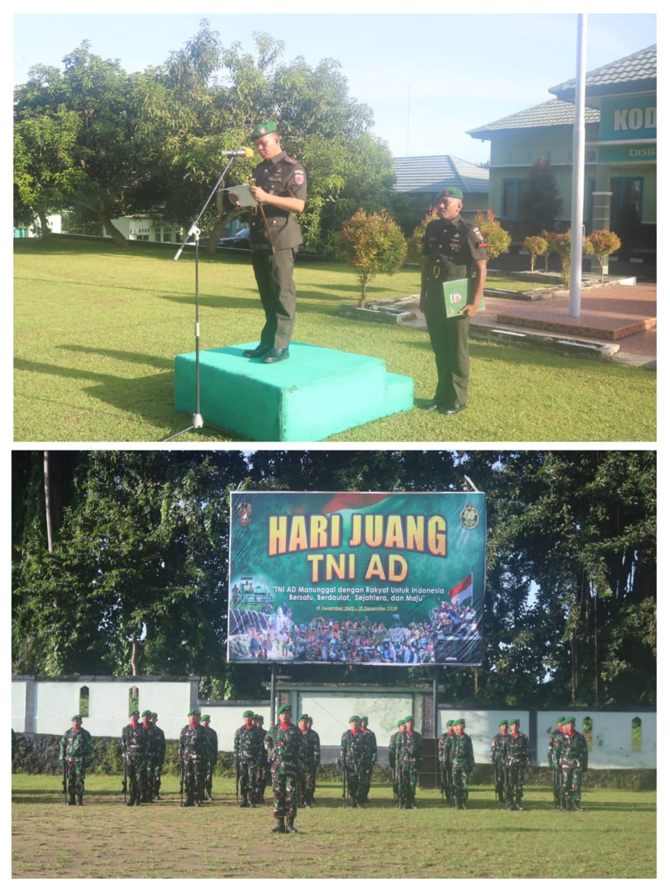 Dandim 1509/Labuha Letkol Inf Syamsul selaku Inspektur upacara membacakan amanat dari Kepala Staf Angkatan Darat Jendral TNI Maruli Simanjuntak, M.Sc. Kepala Staf Angkatan Darat, saya mengucapkan “Selamat Hari Juang TNI Angkatan Darat Tahun 2025”,kepada segenap prajurit dan ASN,teriring ucapan terimakasih yang tulus dan penghargaan setinggi-tingginya atas segenap dedikasi serta pengabdian yang telah diberikan untuk kemajuan dan kejayaan TNl Angkatan Darat.