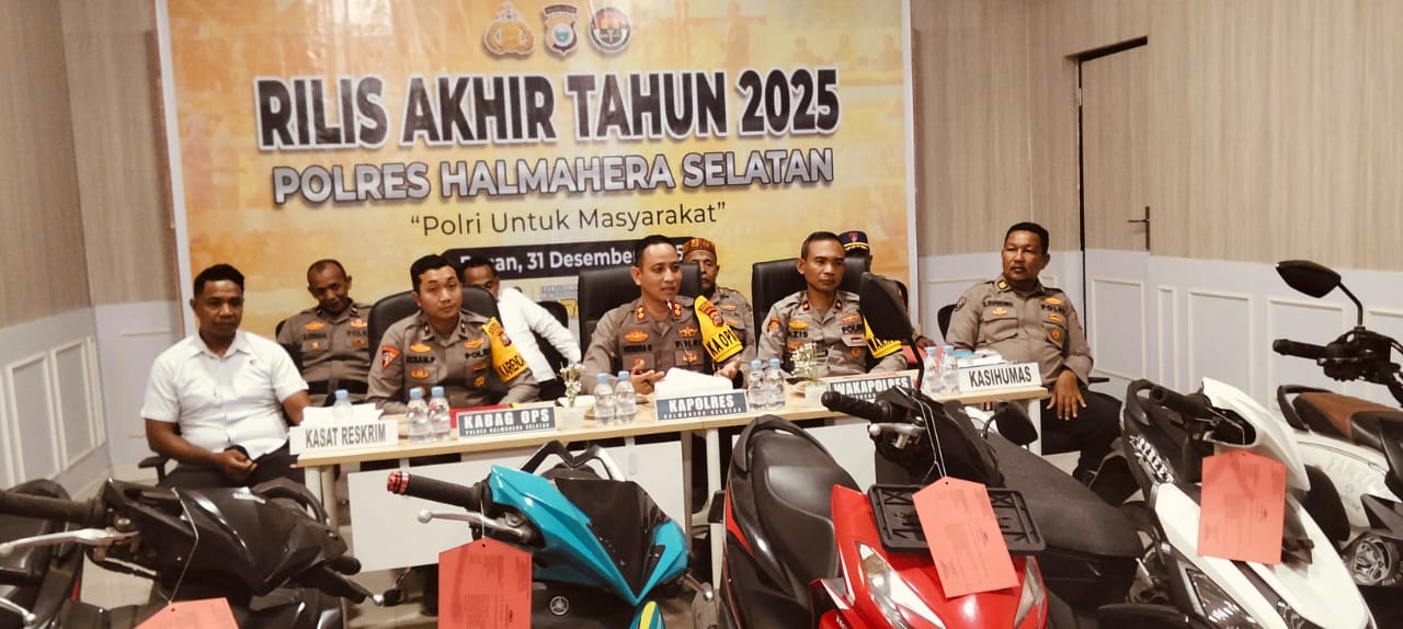 Halmahera Selatan ( tribunnusantara.net ), Kapolres Halmahera Selatan, Provinsi Maluku Utara, AKBP Hendra Gunawan S.H., S.I.K., M.M., memaparkan capaian kinerja Polres Halmahera Selatan sepanjang tahun 2025 dalam jumpa pers bersama wartawan. Capaian tersebut meliputi bidang operasional, pembinaan, penegakan hukum, dan pelayanan masyarakat.